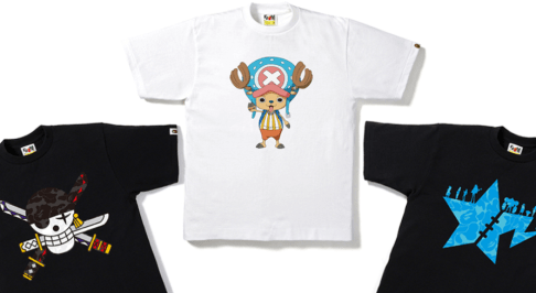 Fans of the anime smash hit One Piece will have a cool graphic tee line-up from BAPE. Starting June 9, at BAPE NYC and on their online store, they will be selling 5 different tees in this collection: Zoro Tee, Luffy Tee, Zoro Flag Mark Tee, Chopper Tee, & the Star Silhouette Tee.