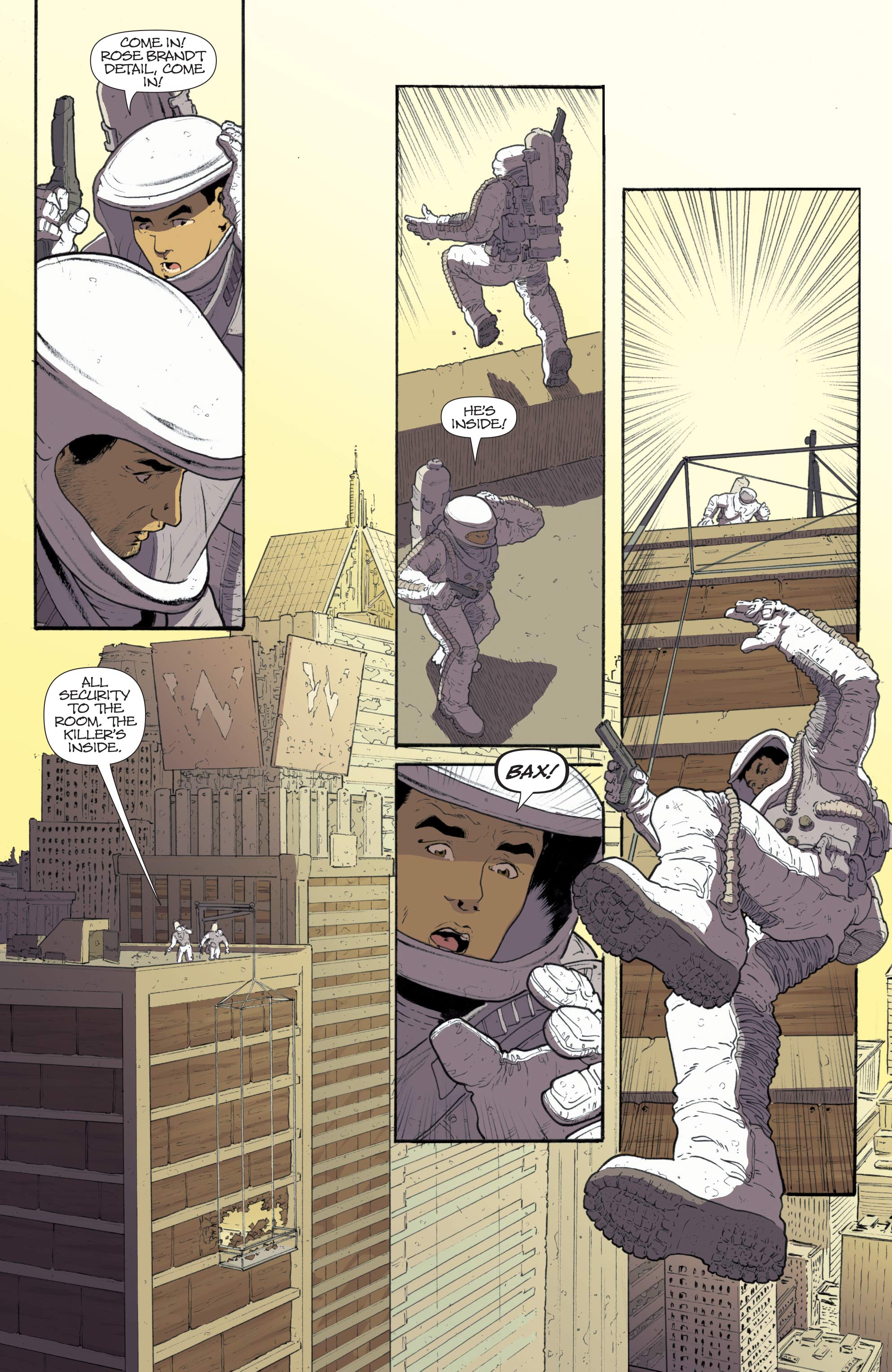 In the exciting, climactic issue, Cielo lies trapped by our mysterious killer, whom we’ve just learned holds a secret that may offer salvation to the world’s deadly sunlight. Will our disillusioned hero Bax rise to the occasion? Will he be able to save Cielo and take the killer alive?