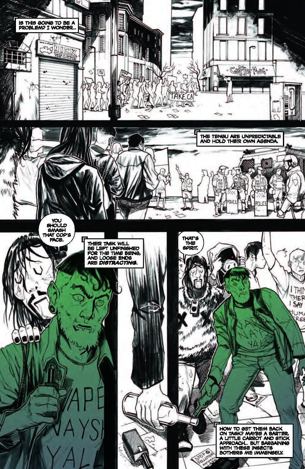 Creator Tom Riordan and brand new artist Marco Ferrari have taken us deep inside the rabbit hole for KILLBOX: CHICAGO, but we have even further to go — literally and figuratively, as Interpol agent Mako Mori reveals her loyalty and heads into the Chicago sewer to expose the Killbox program!