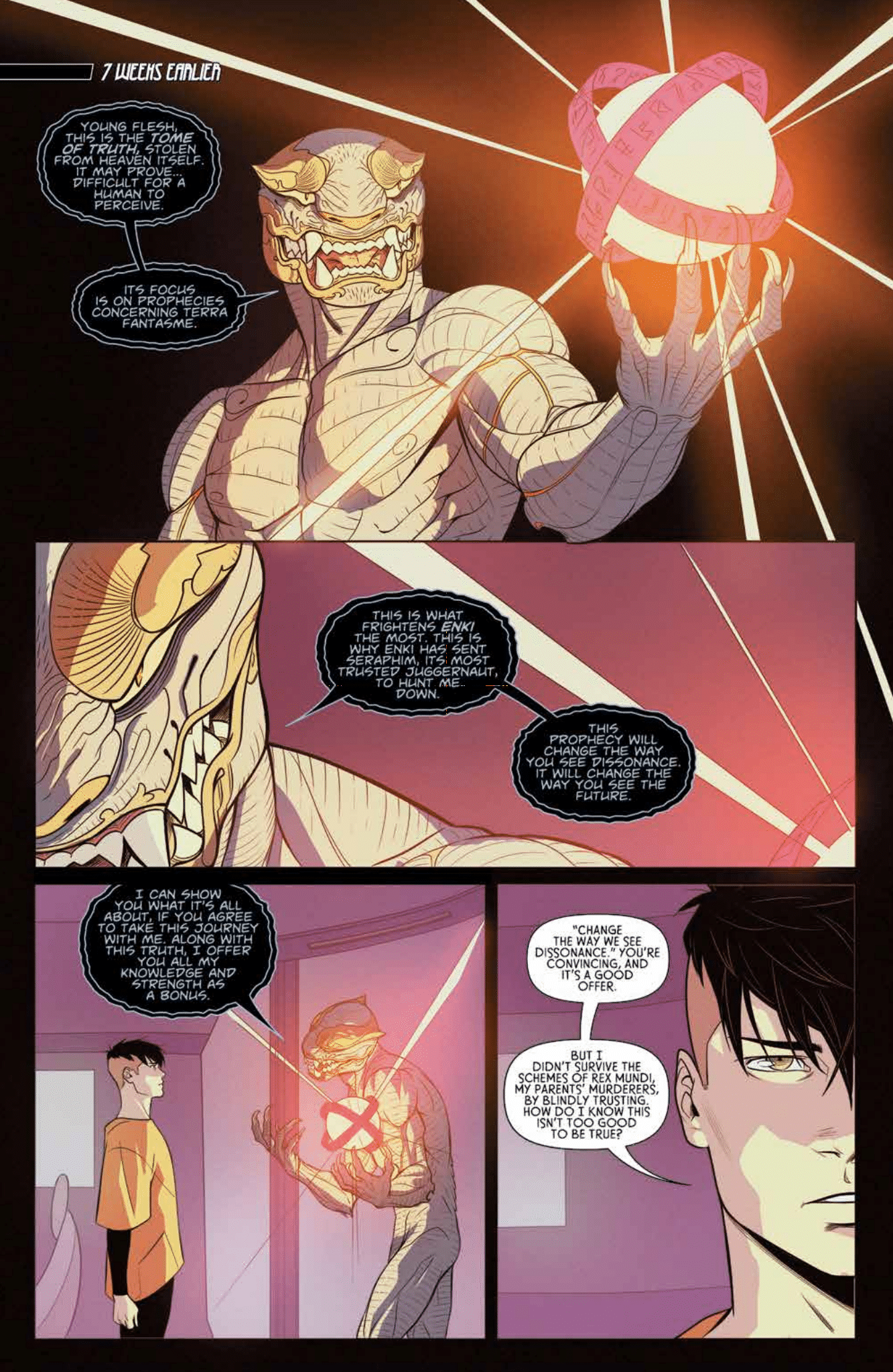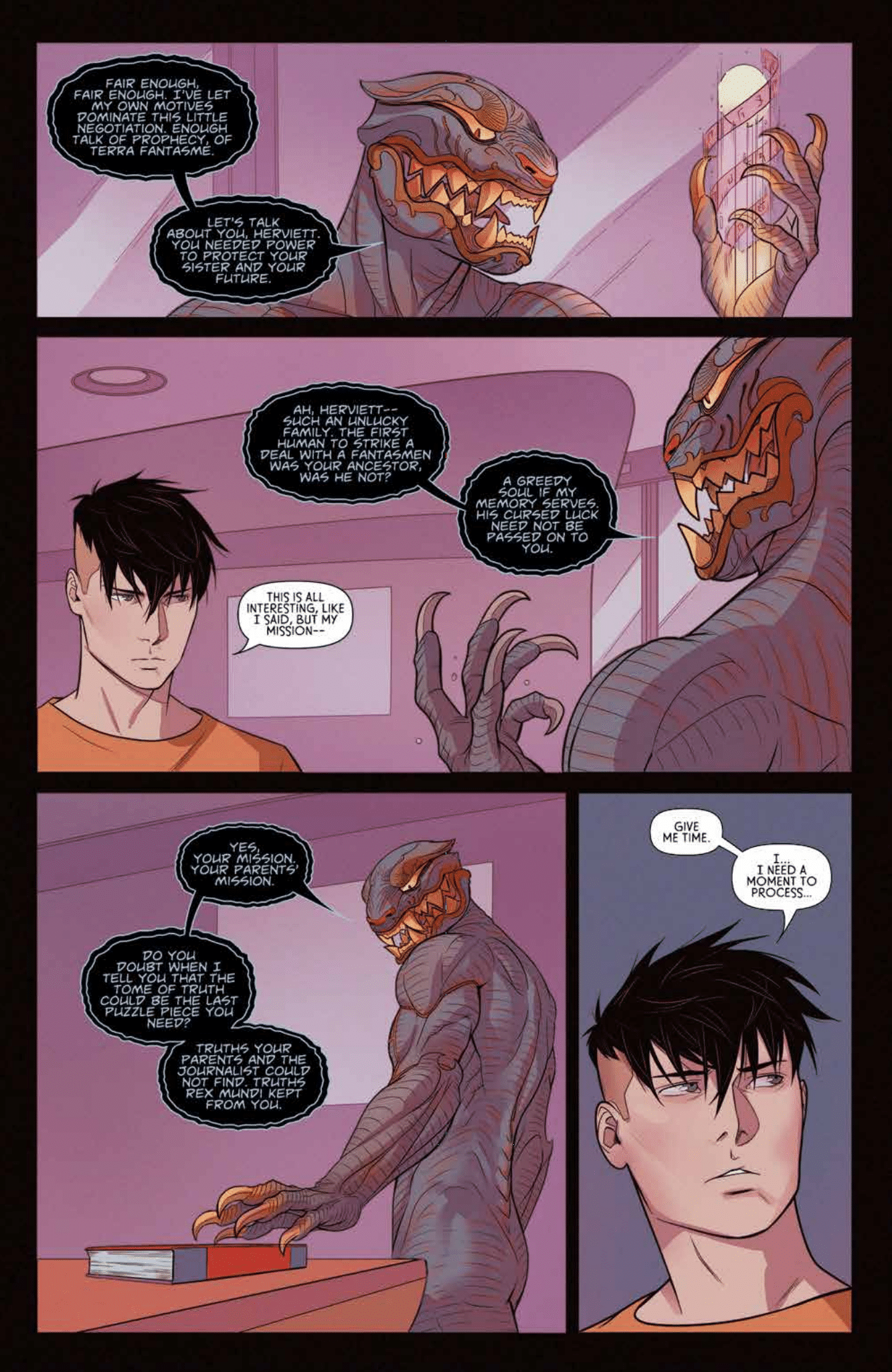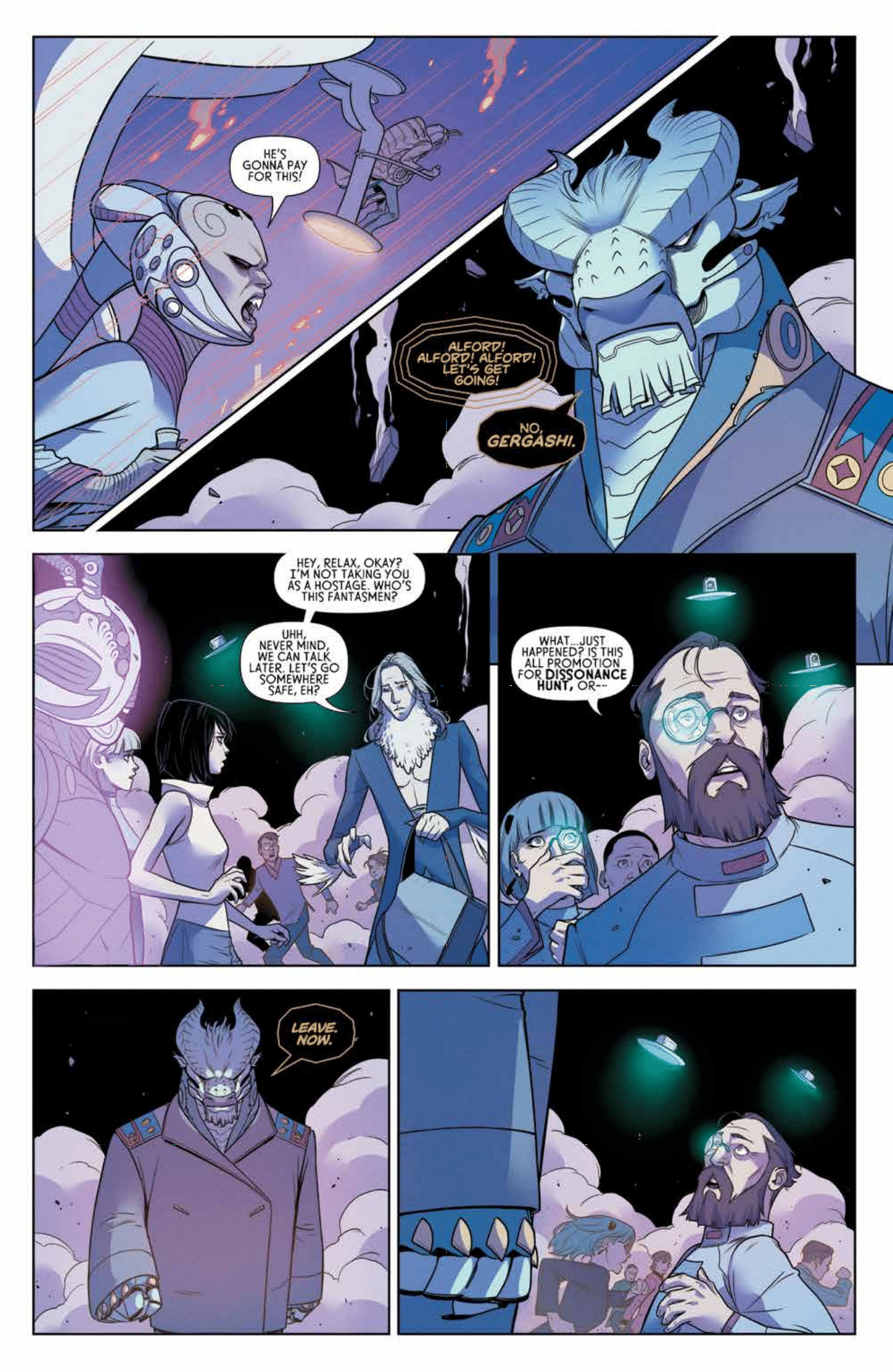In an alternate world where Earth is populated with powerful human-spirit hybrids called Fantasmen, Folke and Roisia Herviett, two siblings with opposing worldviews, are challenged to prove their worth to fill their parents’ leadership in a devious group who secretly runs the world. Meanwhile, Seraphim, a Fantasmen warrior guard, is sent to prevent a catastrophic event from affecting the Earth and its own universe. From designer MELITA CURPHY, writer SINGGIH NUGROHO, and featuring art of SAMI BASRI (Power Girl, WITCHBLADE). Immerse yourself in a fantasy drama set in a sci-fi world unlike any other. Collects DISSONANCE #1-4.