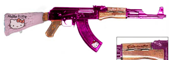 Valentine’s Day is just around the corner. If your girlfriend or significant other likes Steven Segal movies, MMA, or other tomboy hobbies – well get over to Glamguns.com – they have a Hello Kitty AK-47. It’s pink and violent. It’ll set you back around $1,072.95USD. But, hey, it’s better than a diamond ring? Isn’t it? It’s a freaking Hello Kitty AK-47!