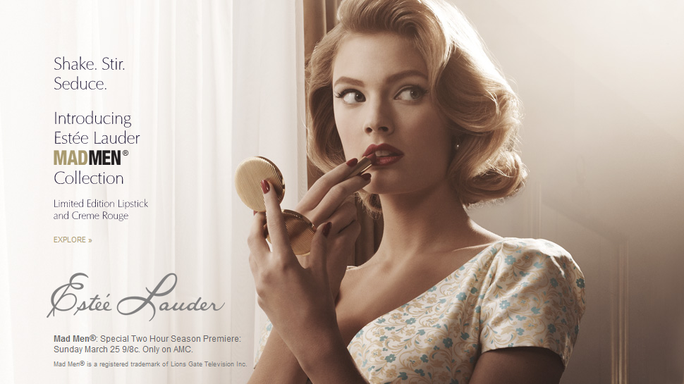 Following the heels of Banana Republic’s successful Mad Men inspired capsule collection, Estee Lauder will be debuting their very own retro-inspired collection on March 18, just a couple of days before the premiere of Mad Men Season 5 on March 25th. A second collection for Season 6 is currently in the works.